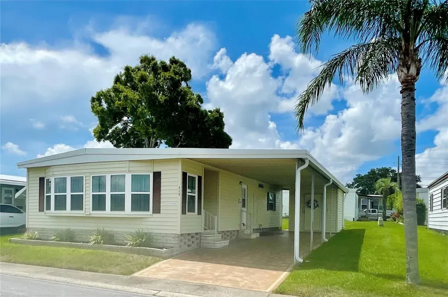 Under contract-accepting backup offers. This fabulous two bedroom/two bathroom double wide manufactured home is truly move-in ready and located in a friendly and active 55+ community where you own the land! Step inside to find a light and airy open floor plan featuring upscale finishes throughout. The living room and dining areas are bright and inviting, ideal for relaxing or entertaining guests. The gorgeous kitchen boasts updated cabinets with soft close doors and drawers, quartz countertops, and stainless-steel appliances. Completely updated bathrooms with new vanities, fixtures, and lighting. Beautiful interior featuring fresh paint. Newer Berber carpets in living areas and luxury vinyl in kitchen and bathrooms. Exterior features include a two-car covered carport, three exterior doors for easy access, and attractive landscaping/curb appeal. Roof 2020. AC 2022. All this at Blue Jay Es...