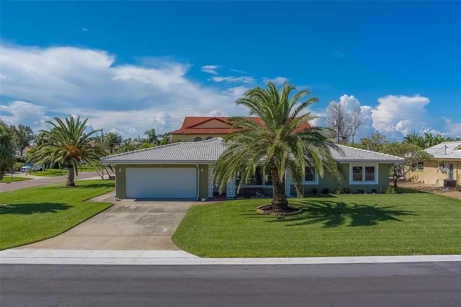 Welcome to 110 21st Street in desirable Belleair Beach, a beautifully remodeled 3-bedroom, 2-bath home perfectly situated just steps from Gulf beach access at the end of the street. Set on a spacious corner lot, this property combines modern upgrades with coastal charm. Every detail has been thoughtfully updated, including brand-new hurricane impact windows and doors, a new hurricane-rated garage door, and elegant finishes throughout. The outdoor oasis features an in-ground pool with a paver deck, fenced yard for privacy, lush St. Augustine grass, and stunning tropical landscaping that enhances the curb appeal. Inside, the open layout and fresh design make this home ideal for everyday living or entertaining. Enjoy the best of beachside living in a quiet, upscale community while still being close to shopping, dining, and all the Gulf Coast has to offer.