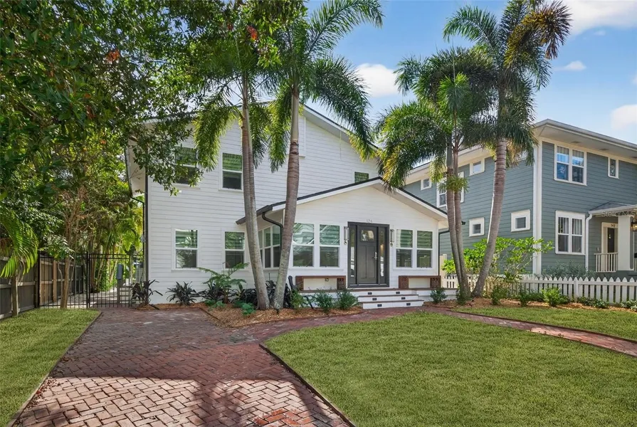 Completely reimagined and masterfully expanded, this 3-bedroom, 2.5-bathroom stunner in the coveted Old Northeast neighborhood is a rare blend of timeless elegance and modern sophistication. Taken down to the studs and rebuilt with extraordinary precision, this home boasts brand-new everything—roof, plumbing, electrical, and walls—leaving no detail overlooked. The heart of the home is a bespoke kitchen, crafted by a local artisan boat builder, featuring sleek Miele appliances, custom fixtures, and thoughtful design that perfectly balances luxury and functionality. The spa-inspired bathrooms are equally impressive, showcasing premium finishes, Toto toilets, and an ambiance that invites relaxation. Step through to the backyard, where your private retreat awaits. A shimmering saltwater pool with a sun shelf, travertine patio, and three cascading waterfalls takes center stage. Equipped with both a heater and a chiller, the pool ensures year-round enjoyment, whether you're cooling off on a hot summer day or warming up during cooler evenings. A Generac generator ensures peace of mind, and with no flood zone concerns, this home offers both security and serenity. Set in a neighborhood known for its charm and walkability, this is an incredibly rare opportunity to own a completely new home in one of St. Pete’s most iconic locations. Don't miss your chance to experience the pinnacle of luxurious living in Old Northeast.