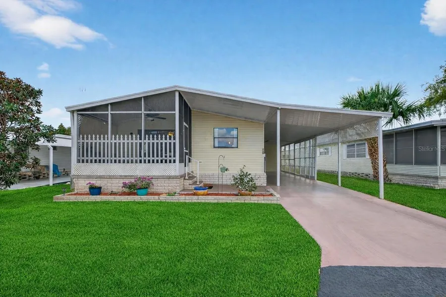 Welcome to relaxed, low-maintenance living in the highly sought-after 55+ community of Club Chalet—a centrally located community featuring comfort, convenience, and outstanding value just minutes from everything you love about Florida living. This inviting 2-bedroom, 2-bath residence with 1,056 square feet of living space is thoughtfully designed to maximize space, storage, and natural light throughout. Vaulted ceilings create an open and airy atmosphere throughout the main living areas, while newer flooring adds a fresh, modern feel and enhances everyday comfort. Large windows allow sunlight to fill the home, creating a bright and welcoming environment from morning through evening. The well-planned layout offers excellent flow between the living and dining areas, making both entertaining and daily living effortless. The kitchen provides generous cabinet and storage space—perfect for keeping everything organized and within reach. The spacious primary bedroom serves as a peaceful private retreat, featuring a walk-in closet and a private en-suite bath, presenting comfort and privacy for everyday living. A well-appointed guest bedroom and second full bath provide ideal accommodations for visiting family and friends. One of the home’s standout features is the oversized covered carport with tandem parking for up to three vehicles—a rare and highly desirable amenity in the community. A screened patio extends your living space outdoors, creating the perfect setting to enjoy Florida’s beautiful weather, morning coffee, or quiet evenings with friends. Storage is abundant throughout the home, including a large laundry room with additional space ideal for bikes, beach chairs, seasonal items, and hobby equipment—making organization easy without sacrificing living space. Residents of Club Chalet enjoy a relaxed and social lifestyle with a low monthly HOA that provides exceptional value where you own the land. The fee includes water, sewer, trash pickup, cable, and internet, allowing for simplified monthly budgeting. The community also features a heated swimming pool, perfect for year-round enjoyment and connecting with neighbors. Ideally located close to shopping, dining, and everyday conveniences—including shopping, nearby Publix Super Market and Target—this home is also sits high and dry and just minutes from Florida’s top-rated Gulf beaches, offering endless opportunities for recreation, relaxation, and coastal adventures. Whether you are searching for a full-time residence or a seasonal retreat, this beautifully maintained home delivers comfort, value, and peace of mind.