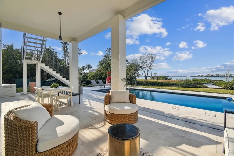 Gulf-Front paradise with Sunset views! Welcome to Sea Breeze Island. Incredible 3 story executive home with elevator, for ultimate Florida living. Offered unfurnished for lease, High and dry, featuring 5 bedrooms, 4 bathrooms, hurricane impact rated windows and private saltwater pool. From the moment you arrive the curb appeal is undeniable, with beautiful lush landscaping. Step inside and you’ll be greeted by solid white oak floors throughout, and sweeping water views. Sliding doors lead to a magnificent balcony begging for morning coffee or afternoon cocktails! Seamlessly blending a living area with wood burning fireplace and the kitchen, complete with CAFE appliances, beautiful cabinetry, large Island with designer quartz countertops, gas cooktop, wine fridge and substantial eat-in dining, making it the perfect space for family or entertaining guests. Sliding doors open to a covered p...