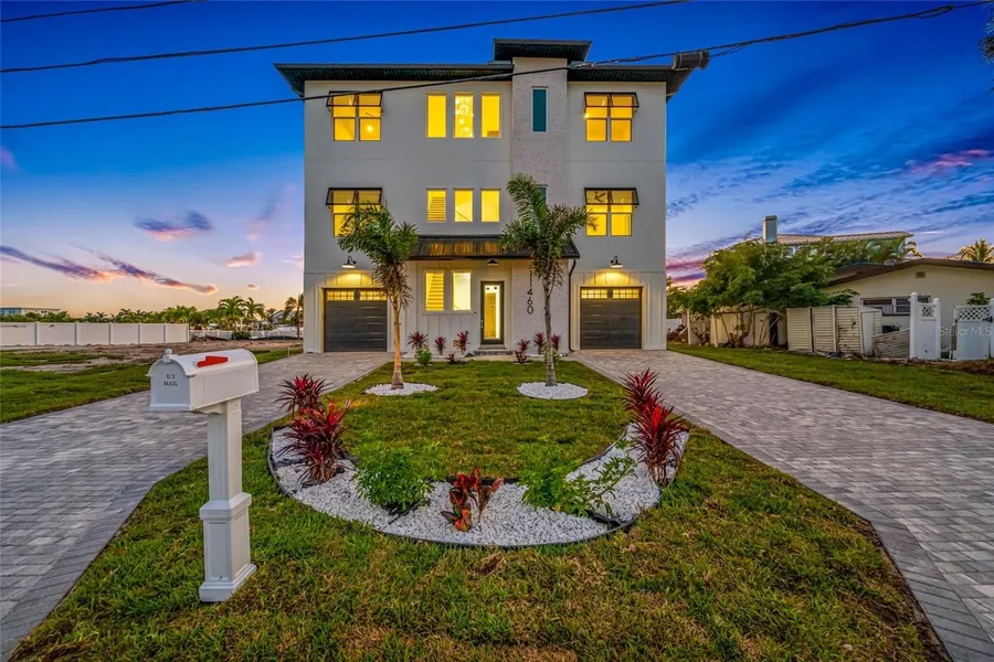 Coastal Dream Home- Elevator with exterior window! New construction waterfront masterpiece, never lived in and ready for it's new owner. This 6 bedroom, 5.5 bath modern coastal home is designed for effortless entertaining and private retreat living. Enjoy indoor/outdoor living, a chef’s kitchen, theater room, home office, and a luxurious primary suite with sunset water views. Attention to detail in every corner, designer finishes, and fortress style all block construction offer style and peace of mind. Hurricane rated double hung windows of course. Outdoors, a private waterfront paradise with a heated AND cooled saltwater pool, raised spa, and lounge areas. Massive garage space on the ground level! Deep water location close to the beach, dining, shopping, and John's Pass. Buyer's from all over the world would envy this property. Come see it for yourself.