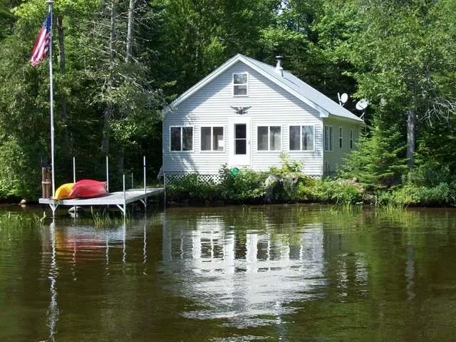 Offered for sale is a cozy Maine waterfront cottage on pristine Piper Pond. The cottage features an open living room, dining area, kitchen, full bath, second floor bedroom and a separate bunk house for extra guests. This cottage was remodeled about 6 years ago and offers a new metal roof, all new windows and maintenance free vinyl siding. The cottage sits just feet from the water and includes an aluminum docking system. Enjoy watching Bald Eagles, listen to the Loons, fish for Salmon and Trout and just enjoy the north woods of Maine.