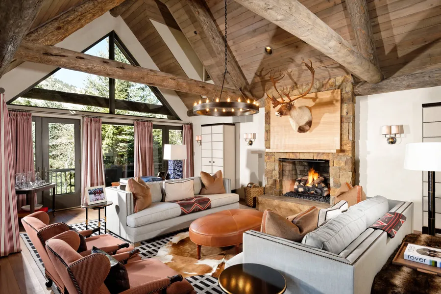 Enjoy Aspen Mountain views from the privacy of this contemporary Colorado-style home, located walking distance from Aspens downtown core. Features include six bedrooms, seven and one half baths, upper-level living with floor-to-ceiling windows, an open kitchen, dining for ten, a large upper-level deck with outdoor dining and a hot tub, radiant heat, air conditioning, a private deck off the master bedroom, abundant closet and storage space, a two-car garage, and mature trees and landscaping.