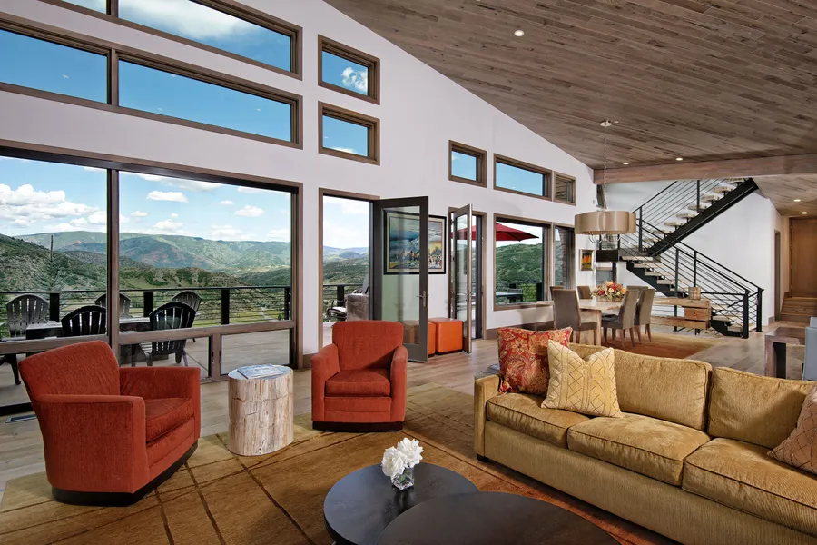 This stunning 5-bedroom mountain contemporary home on Oak Ridge Road features sweeping views framed by floor-to-ceiling windows, an open floor plan, gorgeous finishes and furnishings, two living areas, three fireplaces, all bedrooms en suite, walk out patios and terraces, an office, workout room, massage room, den, wet bar, snow-melted driveway, sunken hot tub, fire pit, and built-in BBQ. This is the perfect property for your next mountain getaway!