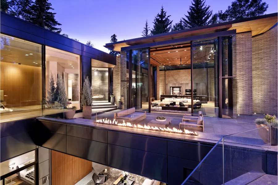 Through the use of modern roof planes and stone & steel finished walls, natural light pours into the open floor plan. Steel, wood, and brick blend with the surrounding landscape allowing for perfect harmony between exterior and interior environments. All lower level rooms walk out to a secluded garden level oasis.