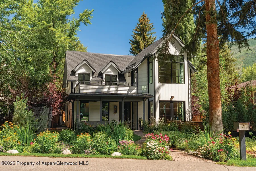 This custom built home completed in 2020 (taken down to the studs and the basement dug out) has 7 bedrooms 6 and one half baths and perfectly furnished is roughly 4,500 square feet plus deck, patios and garage, located in the Towns West End neighborhood and has views of Aspen Mountain and the lovely Victorians and spruce trees that line the street. Amenities include three living areas, wet bar and a private primary den with balcony, exterior spa and overhead heated patio. The primary bedroom overlooks the homes exterior lounge with fire pit with seating and views of Ruthie's Ski Run. Steps to the Aspen Music Tent, Aspen Institute, Rio Grande trail and less than a block to the Cross Town Shuttle to take you skiing or to the core of Aspen; only if you don't feeling like walking into town. Interior designer Washington DC based Crosby Designs LLC and Aspen based Architect Ryan Lee of Forum P...