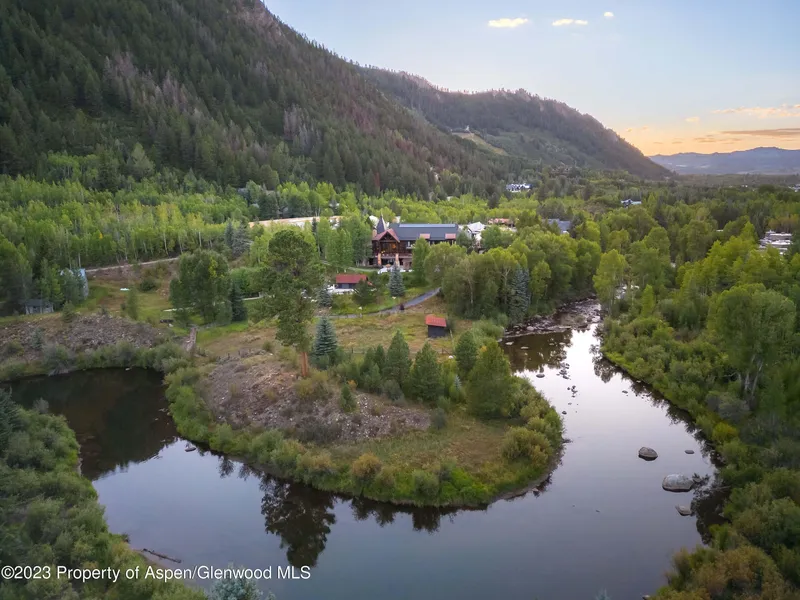Discover an extraordinary estate, uniquely offering more than 15,000 square feet of opulent living space in a secluded and naturally picturesque setting, conveniently close to downtown Aspen. Nestled on approximately 6 1/2 acres alongside the flowing Roaring Fork River, this property features nine bedrooms, eight of which are lavish en-suites, with many opening to sunlit decks and mountain panoramas. The expansive living areas are tailor-made for hosting gatherings or cherished family moments, providing awe-inspiring vistas of Independence Pass. The stunning great room, graced with lofty ceilings, showcases a glass wall that effortlessly slides open, merging indoor and outdoor realms, while the adjoining dining room sets the stage for memorable occasions. A capacious chef's kitchen entices all to congregate, offering a cozy sitting area, a fireplace, and a dining spot, all framed by flaw...