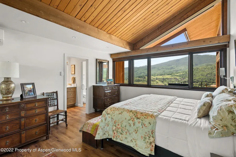 A stylish, mid-mountain retreat with sweeping mountain views, Perfect View sits just 5 minutes from skiing at Snowmass and 20 minutes from downtown Aspen. Defined by walls of windows, stacked-stone fireplaces, and vaulted tongue-and-groove ceilings, this vintage home welcomes guests to an open-concept living area with a classic lodge ambience. Settle into one of two full-length sofas by the wood-burning fireplace, find inspiration at an antique drafting desk, or step onto the expansive upper-level deck to enjoy views that stretch from Independence Pass to Sam's Knob. Steps from the living area, an 8-seat formal dining table offers space for sit-down dinners. Six stools at the breakfast bar allow for larger groups or a separate ''kids' table.''On blue-bird days, fire up the gas grill for dinner al fresco at the 8-seat patio table. Ideal for families or larger groups, this home also features a lower-level den with a large-screen TV, wood-burning fireplace, pool table and twin-size daybed. Give kids their own space to play, or use this space for apre-ski at home. Glass doors open this level to a covered patio and hot tub with mountain views. Guests mixing work with leisure will also appreciate the den's office area, which overlooks the mountains through picture windows. Down the hall is a private guest suite. The home's four bedrooms, evenly spaced for privacy, accommodate up to 8 guests with flexible bedding configurations. A gourmet kitchen with stainless steel appliances and a private washer and dryer add all the comforts of home. From its convenient location near Snowmass Village, Perfect View offers access to all four of Aspen's ski areas in under 25 minutes. An attached 1-car garage makes it easy to explore the surrounding area, including hiking and biking trails, golf courses, playgrounds and live events. The restaurants, shops, galleries and entertainment downtown are 20 minutes away. Whether you're planning a ski vacation or summer escape, Perfect View is ideally situated to experience the year-round recreation and culture of Aspen. On blue-bird days, fire up the gas grill for dinner al fresco at the 8-seat patio table. Ideal for families or larger groups, this home also features a lower-level den with a large-screen TV, wood-burning fireplace, pool table and twin-size daybed. Give kids their own space to play, or use this space for apre-ski at home. Glass doors open this level to a covered patio and hot tub with mountain views. Guests mixing work with leisure will also appreciate the den's office area, which overlooks the mountains through picture windows. Down the hall is a private guest suite. The home's four bedrooms, evenly spaced for privacy, accommodate up to 8 guests with flexible bedding configurations. A gourmet kitchen with stainless steel appliances and a private washer and dryer add all the comforts of home. From its convenient location near Snowmass Village, Perfect View offers access to all four of Aspen's ski areas in under 25 minutes. An attached 1-car garage makes it easy to explore the surrounding area, including hiking and biking trails, golf courses, playgrounds and live events. The restaurants, shops, galleries and entertainment downtown are 20 minutes away. Whether you're planning a ski vacation or summer escape, Perfect View is ideally situated to experience the year-round recreation and culture of Aspen.