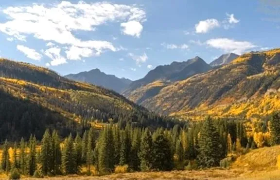 In a forest of aspen and spruce with sweeping vistas of peaks and wildflower meadows.