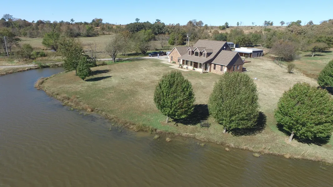 SITE: 28 acre ranchette developed as an equine/cattle unit. Sitting off the road on a long drive, the property offers plenty of privacy. The nearly level terrain features good soils capable of forage production for an equine or small cattle operation. The manicured lawn extends down to the large pond stocked with bass, catfish, bluegill and grass carp, circled with fruit and tastefully placed trees. The pool in the backyard is the perfect place to relax after a long day. Good perimeter fencing. Easy access to either the Indian Nation Turnpike or SH 69, both major travel hubs.