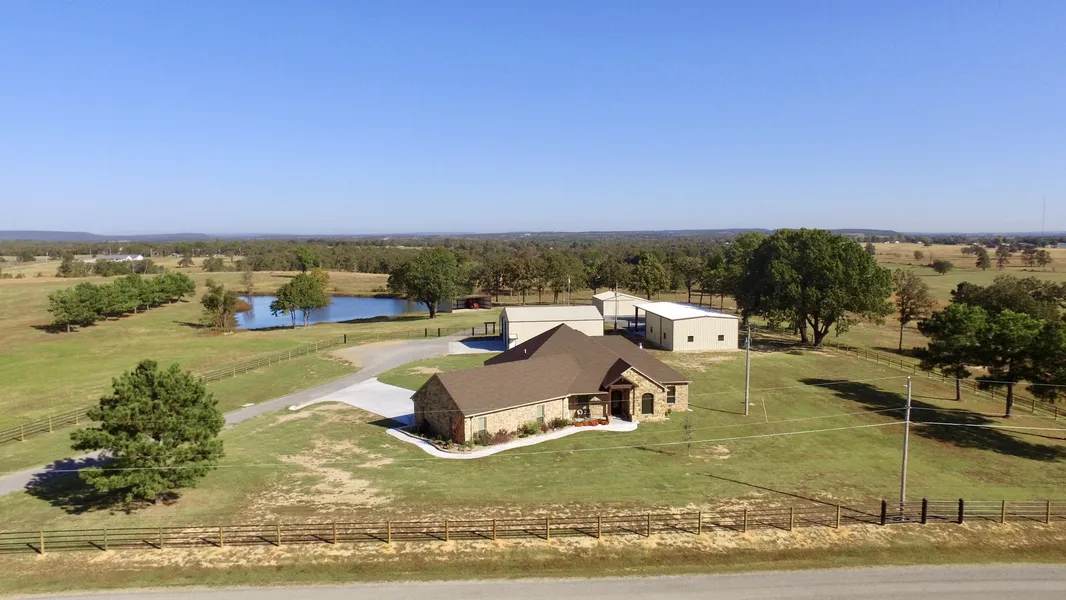 Water: Ranch has 1 pond is 1.5 plus acres in size. Stocked with bass,catfish, & bluegill. There are also two intermittent creeks on the property.