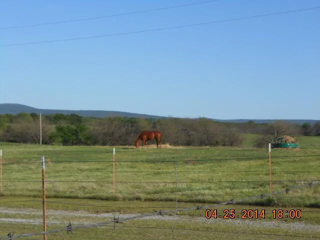 Lets talk about this property: Custom-Build in 1999 and a One-Owner Home; this property has much to Offer and is immaculate and certainly move-in ready! The front porch area overlooks the land and grazing live-stock and pond area. The hoe is situated with a long drive-way on driveway is fenced on both sides. This improved land has been well taken care of as you may see on the pictures! It is simply gorgeous and beautiful! Plus surveyed too! About 95% open with some scattered woods in back and seasonal creek. Land is fertilized and weed-sprayed, the Owner practiced good stewardship of the land and takes pride in what they own. Since it is mostly level terrain without little rock it would be ideal for horses too. The pastures are ideal for hay production, rotation of live-stock and land is fenced and cross-fenced with good fenced all around. The 3 ponds are good size and in the back is part of a large pond on our land. So you actually have 3 1/4 ponds. The land is also suitable to have a roping arena! Many rodeos are conducted within 15 min. in Hartshorne and the Lighting C Arena is just 10 min. away. The 45x40 metal barn/shop has electricity, water and adjoining to the barn s a cattle alley pen area too. There are 4 stalls for horses or cattle plus an enclosed chicken pen, so it could be another stall for horses too. Nearby is a 15'x40' 4-bay loafing barn w/ adjoining pen area.The metal storage building is always nice to have to and could be a tack/feed room! This property simply shows the pride of the Owner. Location, Land and Home are great!