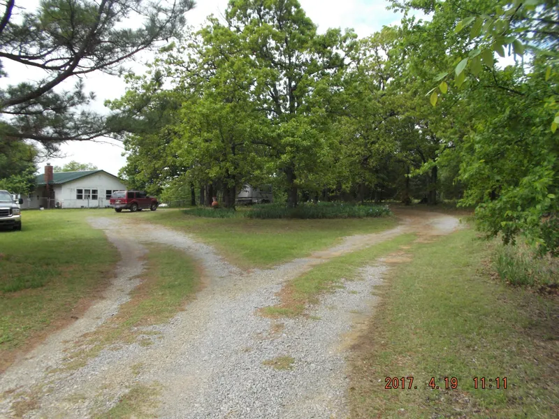 Close to the dam on Lake McAlester this 10 acre tract of land offers a 2 bedroom 2 bath farm house with metal roof. The land is flat with 2 ponds, fenced with pasture and some treed areas. There are a couple of out buildings. There is a fenced yard around the house. The house pretty much cannot be seen from the main road. The tree lined drive way ends with a circle drive in front of the house.