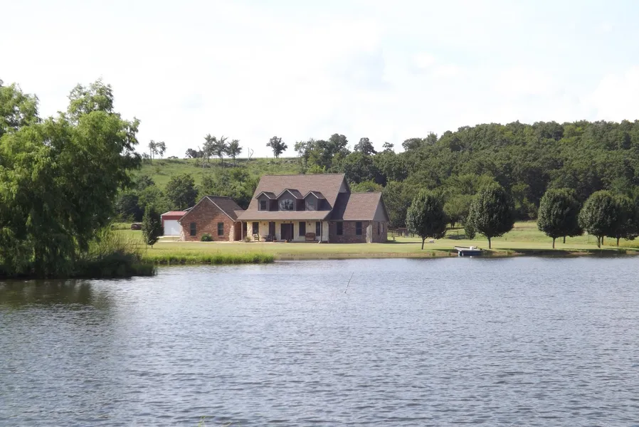 Located about 15 minutes north of McAlester, OK, this ranchette is exceptional in its amenities and pristine condition. Custom built in 2006, the home features four bedrooms and 2.5 baths, office, large laundry/mud room, with an open concept floor plan. The granite countertops, beautiful staircase railing, large windows, zoned CH/A with complementary wood burning stove downstairs, and natural gas heater upstairs, all come together to make this home inviting and efficient. The master suite is located on the main floor and boasts twin vanities, large step-in tiled shower, jetted tub, and a large walk-in closet. The two oversize upstairs bedrooms also feature large walk in closets, sitting areas, built in desks and a Jack and Jill bathroom. The lake views from the house are breath-taking. Combine all of this with the above ground pool with deck, 24X30 shop, the 30X40 barn with stalls, tack room, 1/2 bath, and office, the RV shed and corral and you have one amazing ranchette nestled on the south side of a foot hill. The home also features stained wood trim, solid wood doors, an outdoor shower and a safe room in the garage. Free natural gas is piped into the house from the gas well on the property. The land is about 95% open pasture with a good grass base, large lake, fenced with a corral, and catch pen. McAlester Lake is about one mile from the property and provides additional boating and fishing opportunities. For additional details or to view this beautiful property call Sandy Brock Bahe at 918-470-4710 or Toll Free at 844-ALB-LAND.