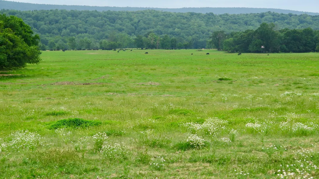 Terrain: This tract has gently rolling terrain with small hill tops throughout the property. There is beautiful bottom land along the the wet weather creek, which is lined with huge water oaks and other various trees. The hill tops provide beautiful views of the surrounding mountains. This property is approx. 75% open pasture land with 25% being wooded.