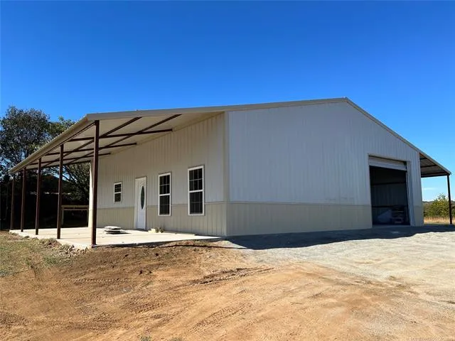 HIWAY 31 JUST EAST OF BLOCKER! NEW METAL 40' X 40' BUILDING ON 4.1 ACRES. SHOP AREA APPROX. 24' X 40'. TWO 12' X 40' PORCHES (FRONT & BACK) WITH CONCRETE SLAB. APPROX. 14' X 38' LIVING AREA THAT WILL NEED FINISHING TOUCHES. PARTIALLY WIRED, PARTIALLY PLUMBED. STUD WALLS AND MOST SHEETROCK IN PLACE. WATER AND ELECTRICITY AT THE ROAD. LAND IS MOSTLY FLAT WITH GRASS. COME FINISH THIS AND MAKE IT YOUR OWN! BUILD YOUR NEW HOME AND USE THE SHOP FOR GUESTS. NICE START TO A GREAT SET UP!
