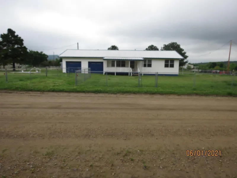 Inviting Country Setting on 1 acre at edge of Town! The property has 2 side road frontage and features 3 BR 1, BA Ranch style home with a 2 car attached garage and metal roof. The land is almost 1 acre with perimeter fencing, several entrance gates and separate chain-link fencing around the home serving as cross fence to the land with the big barns. Near the house is a storm shelter and a storage building with electricity. The water well is located in the storage building and so is the dryer hookup. In the yard is a large cloth line perfect to hang your washed bedding and cloth up. The household water is well water, but City Water is available. The Owner purchase already a meter, which benefits a new Owner in the future if the wish to connect to City Water. The house also is connected to natural gas.