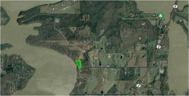 As you can see on the satellite; it is around the Cove by Elm Point at Eufaula Lake off US Highway 31 E. Elm Point has a great boat ramp and all you do is cruise around the cove corner to location. Swimming, Boating, Fishing, kayaking, water skiing; this place is simply a unique on to have fun! Imagine to take your honey for a weekend retreat to the lake with nobody around, experience wonderful sunsets and sunrises, being in the Tent with your loved one. Or gather your friends together, pitch tents and have party time. There are no building or usage restrictions! NO HOA either! There is a beautiful park-like terrain you could pitch easily 10 tents without crowding each other. The road you see on the satellite is a gas well road leading to the neighboring land in the end of the road. Part of the road is on our property and part of the pond is on our property. However, the road leads through the neighbor's property before us and they are no willing to give an easement. That is why this 5 acre waterfront property is priced so low. The nearest road is Vireton Road. From there it becomes the gas well road leading through the neighbor's property all the way through ours and then to the end of the other neighbor's property.