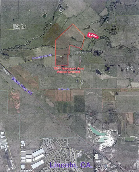 COMMENTS: The property is only minutes away from the fast growing area of Lincoln, Rocklin and Roseville, and approximately 60 acres of the property is also in Village Three (3) of the Lincoln General Plan which is planned for future subdivision development. (See attached map). Another option for a potential buyer is to build their dream home next to the riparian corridor of Doty Creek with large valley oaks, a year round stream, and many years of great income to come from the orchard.