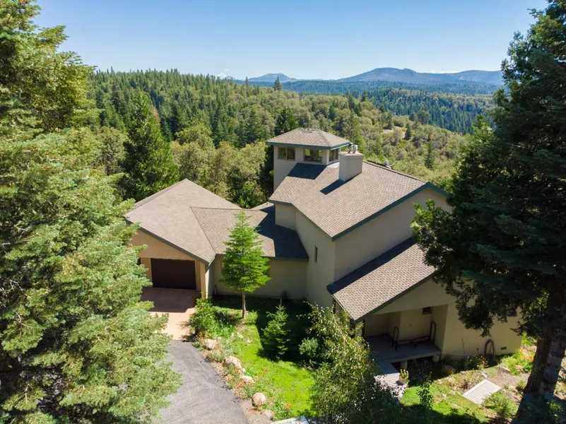 Once in a lifetime opportunity! Escape to the peace and tranquility of this private home with incredible panoramic views from every room. This home features 3 bedrooms, 4 bathrooms, 2 wood burning fireplaces, media room, bonus room, office, sunroom, large viewing deck, workshop, separate oversized insulated RV garage, large flagstone patio, accessible 10+ acres zoned for horses, and much more.