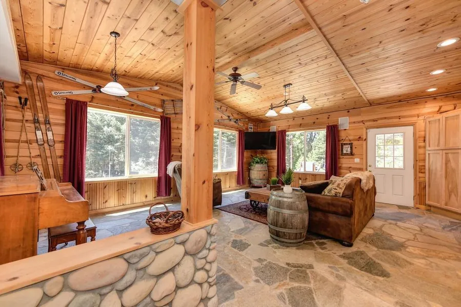 Private mountain retreat on 2 usable acres. Covered front porch welcomes you to this well built home offering 3,036 sf with 4 bedrooms & 2.5 bathrooms. Enjoy natural light throughout! Large family room with cozy wood stove, towering picture window, wood walls and cathedral ceilings. Well outfitted kitchen with granite countertops and stainless steel appliances is open to the dining room and family room. Living room with wet bar and access to covered back patio. Attractive Flagstone floors and warm wood walls on main level. Upstairs you will enjoy a spacious loft, bedrooms and full baths. Attached storage/workshop offers room for bikes, skis and all your recreational equipment. Large detached storage/shop. Level yard and circular driveway.