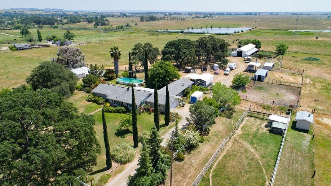 Page 2 Ranch. Located in western Placer County at the base of the foothills sits this 149 (+/-) acres of gently rolling fenced land where nature abounds. For decades it has been a working cattle ranch with horse facilities. Numerous outbuildings include an RV carport, tack room, horse paddock with arena, corrals, stalls, workshop, dog kennels & more. The land is home to a wide variety of wildlife and waterfowl. There is a year-round stream along with water rights and irrigation . A casual circular driveway leads to the comfortable ranch house consisting of three bedrooms, two baths, and formal living/dining rooms with picture windows. The comfortable country kitchen is complete with a movable island, breakfast area and pellet stove. A large laundry/mudroom has lots of storage and pantry space. Overnight guests/ranch hands will enjoy the cozy guesthouse featuring 1 bd, 1 bath & living/dining rooms. Solar provides energy savings! Close to the airport & wine country.