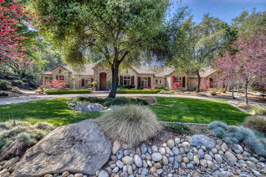 Resting on 1.4+/- Acres, this Mediterranean-inspired estate greets you with a sweeping driveway, rock accents, arched doorways, and meticulous landscaping. Featuring 5 bedrooms on the lower level, 5 baths, 5591+/- Sq. Ft. of living space, and an oversized 4 car garage with two closets and plumbing. Inside, the grand foyer, spacious office with box-beamed ceiling and custom cabinetry, craft room, gym space, and columned formal sitting area with a gas fireplace and recessed lighting welcome you. The second level features the theater room and a bonus room that can be featured as a game room, or secondary office space. The gourmet kitchen offers endless storage and cabinetry, stone hood, hot water spigot, two sinks, Viking double ovens, warming drawer, breakfast nook, wine bar and ceramic farmhouse sink overlooking the living room and backyard. The living space opening up to the picturesque backyard with a pool, waterfall and covered patio also highlights a stone gas fireplace and custom shelving. The primary suite offers another gas stone fireplace, plenty of natural light, walk in shower, spacious tub, dual walk-in closets and private access to the outdoors. Enjoy a swim in the rock-lined pool surrounded by a park-like setting amid an oak forest with asparagus ferns, abelias, birch trees, and illuminated pathways with complete privacy and serenity. Just minutes to top-rated schools, Indian Creek Country Club, hiking trails, parks, equestrian centers, and renowned shopping centers and eateries.