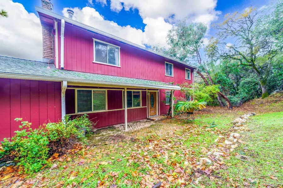 If you've been looking for a house with plenty of room for your kids, animals, vehicles, and hobbies at a price unseen in many years then this just may be the place for you. 5bd/4ba 2760 SF house on 4 very private acres in Auburn only 2 miles from town for under $500K! Yes, you read it correctly, and it's not a typo! Three bedrooms downstairs and two upstairs, including a primary bedroom with en-suite bath on each floor. Each floor also includes a family/living room area with dedicated wood burning stoves. Huge deck area off the lower level and smaller deck with tree-top views off the top. Attached two car garage, plus a second detached two car garage perfect for a shop, art studio, or recreational vehicles. Kitchen has nice granite slab counters. Downstairs living room and hall have beautiful real wood flooring. Roof was replaced in 2010. House is move in ready, but some updating and TLC could transform it into the house of your dreams.