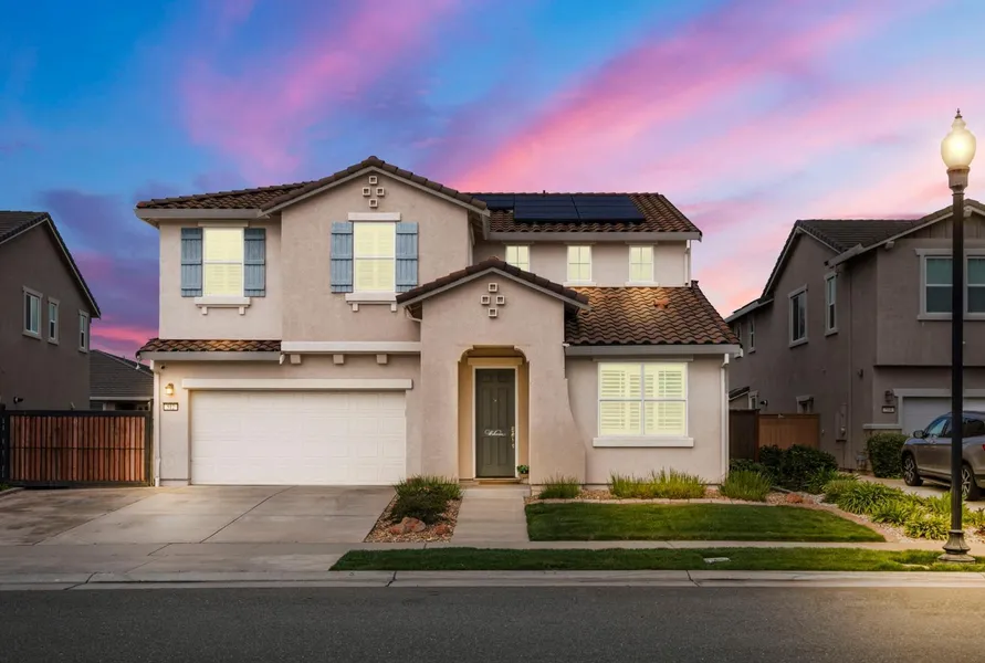 Lots of amenities in this fantastic Lincoln home. Outdoor entertainer's delight with gorgeous BUILT IN SWIMMING POOL with water fall and lighting features, covered patio and easy care yard. Possible RV/Boat side yard access with the expanded driveway and concrete pad. Interior you will find an open floor plan design with great room concept. Spacious kitchen with loads of cabinetry and counter space. Kitchen features include granite counters, stainless steel appliances including new Bosch dishwasher, microwave, trash compactor, double ovens, pantry closet and large island with dining bar. Downstairs has a remote bedroom option (no closet) and a full bathroom. Upstairs has a loft/bonus room and 2 nicely sized bedrooms with a shared bathroom. The master suite is located upstairs with a beautifully appointed bathroom complete with dual vanities, tub, shower stall and large walk in closet. Lots of features and low energy bills with solar! Make this your new home today!