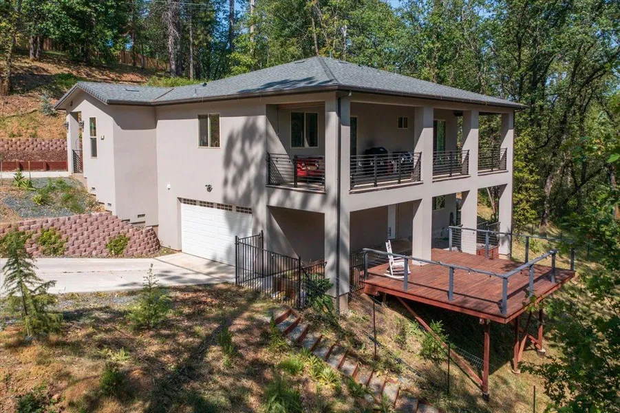 Gorgeous local views on 2.5 lovely acres. Views from the top balcony make you feel like you're in a treehouse. This custom home was built in 2021. Modern kitchen with granite counters and island. Soft close drawers and cabinets with stainless steal appliances. Kitchen has direct access to upper deck which is pipped for a BBQ for use year round. Tankless water heater and Low-E windows helps make this an energy efficient home. Just a few of the home features are automated shades on all windows, outdoor professional shade sliders on terrace and balcony, wood floors throughout and primary bedroom and kitchen access to expensive covered balcony. Please ask your agent to send you the list of additional features. Two balconies overlook your stunning property. Picturesque seasonal pond. You have the beauty of the foothills with easy access to the freeway and amenities. Be on the slopes in no time. Plenty of room for an RV and all your toys. Prewired garage for car charger and the electrical panel is pre-wired for solar panels.