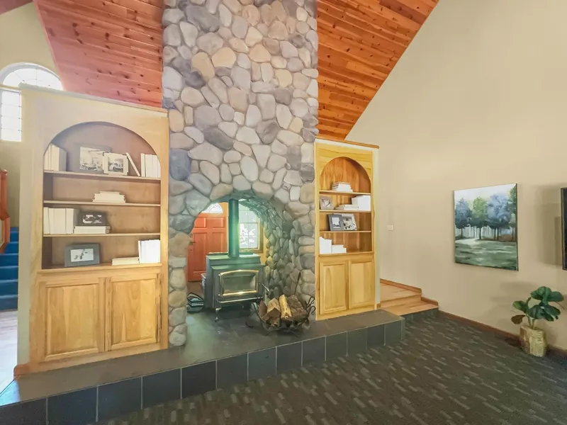 NEW FANTASTIC PRICE PER SQ FT for on this former architect's home designed before it's time. Ask for extensive feature list! Soaring high pine ceilings & refinished oak flooring creates a warm and inviting atmosphere. Gourmet kitchen, boasting hickory cabinets, granite countertops, & built-ins. Andersen Windows throughout. Deluxe private office, dedicated theater room, mancave, kegorator & drink fridge. A beautifully finished undocumented bonus area of about 660 /-sf which is included in the advertised sqft & attic 5th bed(370sf) Sleeps 14 adults, 2 primary suites & 2 bonus rooms provide ample space for the whole gang. Gather around the inviting river rock fireplace, or step outside & embrace California foothill living! Relax by the waterfall or plant your veggies. Have Fun on the 2.4 acre property with fire pit, bocce ball or relax with the tranquility of nature. Sturdy 2x6 constructi...