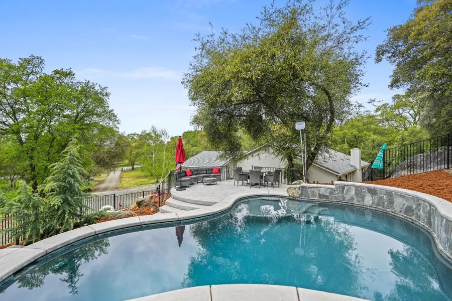 Welcome to your dream oasis in Loomis, nestled in the serene beauty of Placer County! Discover the perfect blend of tranquility and convenience on this sprawling 3-acre estate. Step into luxury living with a custom-built home boasting 4 spacious bedrooms, 2.5 baths, an inviting office space, and a sprawling great room designed for relaxation and entertainment. Immerse yourself in breathtaking views of the surrounding landscape from every angle, offering a constant reminder of the natural beauty that surrounds you. Indulge in outdoor living at its finest with your very own custom pool, complete with a soothing waterfall feature, providing the perfect retreat on warm summer days. Whether you're lounging poolside or enjoying al fresco dining on the expansive patio, every moment spent outdoors is pure bliss. This idyllic property offers the best of both worlds, situated in a peaceful country setting while still being just minutes away from the esteemed schools of Loomis. Plus, with easy access to I-80, commuting to Sacramento or heading up to the breathtaking shores of Lake Tahoe has never been more convenient. Sellers' homeowners policy was recently renewed with discounts for cement siding, boxed eaves, fire sprinklers & good defensible space