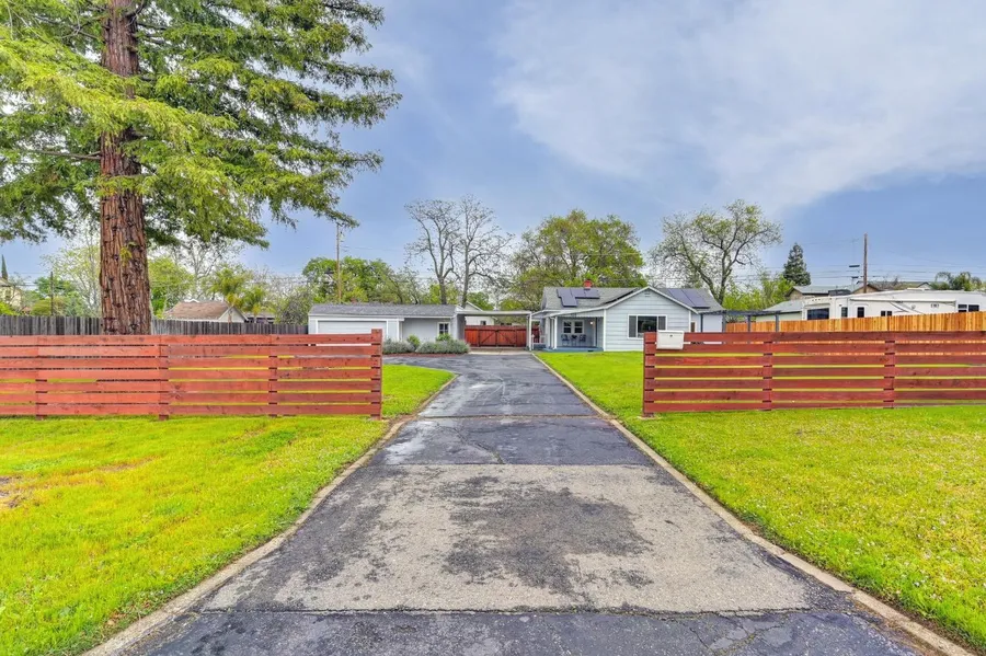 A gorgeous 1940s charmer near downtown Lincoln on a flat and nearly 1/3 acre lot. This three bedroom beauty is perfectly set to the back of property for additional privacy. We love the front porch entry and your heart will melt the minute you open the front door. A grand great room details incredible natural light and overlooks the yard. Be sure to view all the storage on the opposite side of the half-wall. The kitchen details granite counters, warm-toned cabinetry, and opens to an intimate dining space with views of the yard with soft illumination from the solar tube. The mud room off the kitchen, includes laundry hook-ups and exterior access. You'll love the spacious, detached garage with covered car port and alley access. The seller enjoyed the garage as a wood-working space. Calling this space your home - you'll have ample driveway space for all types of vehicles. Want to complete and have the ability to close up the front entry? The gate entry doors are currently stored in garage. Recent updates: newer fencing, fresh paint through parts of the interior, and newer carpet (3/2025). This home does include solar. Location-wise, there are so many great local dining opportunities in and outside of the historic district, along with quaint shops, entertainment, and more. Entering the neighborhood you'll feel like you're being taken back in time and welcoming in a slower pace of life. Nearby, McBean park is home to many city and sporting events, pool, sports courts (pickleball, basketball, tennis), ball park, dog park, and more. Be sure to explore the local trails nearby - you'll have plenty of activities nearby to enjoy. No HOA fees to worry about here. Welcome home.
