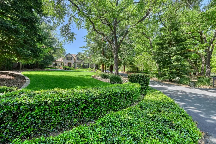 Step into the timeless elegance of this breath-taking French Country chateau, where old-world romance meets modern refinement. Tucked away at the end of a peaceful, serene lane surrounded by majestic towering trees and lush landscaping, this storybook estate offers tranquility, privacy, and presence. The nearly 4,800 sq ft floor plan features a luxurious main-level primary suite with spa-style bath, plus 4 additional upstairs bedrooms with 2 baths including a junior ensuite plus a spacious game/media room. With the soaring ceilings, rich finishes, and architecturally designed beams that elevate your eyes to detail, warmth & distinct texture that perfectly echos the classic European design palette. This home exudes a daily living experience into something extraordinary. The gourmet kitchen is worthy of its own fairytale with its grand island, graceful curves, artisan cabinetry, top-tier appliances & every detail reflect quality craftmanship & sophistication. Outdoors, the enchantment continues with a captivating water feature, gated pool, & lush, vibrant landscaping creating a secret garden oasis. An oversized, side-entry 3-car garage adds both function & form. Just minutes from Folsom Lake, fine dining, boutique shopping, and top-rated schools- this is where your story begins.