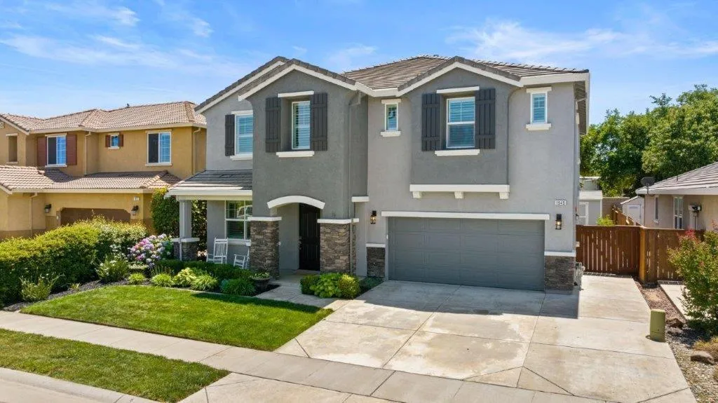 Stunning 5-bedroom + loft + computer alcove, 4.5-bath, 3,236 sqft Meritage home in the sought-after Sorrento community - and NO HOA! Nearly $100K in upgrades, including OWNED 5.5KW SOLAR! Thoughtfully designed with separate dining & family rm plus a full bedroom & bath downstairs. The chef's kitchen shines with granite counters & custom backsplash, S/S appliances, a pantry, island w/sink, and cozy breakfast nook. Upstairs features 4 spacious bedrooms + loft, including a luxurious primary suite with a ceiling fan & bath with dual-sinks, soaking tub, shower, and walk-in closet with organizer. Plantation shutters dress the dual-pane windows! Enjoy the beautifully landscaped backyard with a covered patio, dual ceiling fans, built-in BBQ center, large storage shed with electricity, fruit trees & raised veggie beds! Additional upgrades include: exterior paint (2025), engineered hardwood flooring (2016), carpet with premium pad (2024), HVAC (2020) and new window screens (2025). All just steps from beautiful and scenic Aitken Ranch Park!