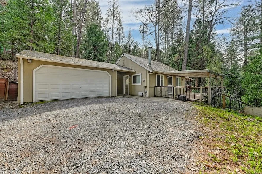 Your Serene Mountain Retreat Awaits! A rare find in the peaceful Todd Valley Estates! This charming 1-acre home is surrounded by towering pines, offering privacy, nature, and endless possibilities. Inside, enjoy a spacious bedroom, cozy family room, and a large bonus room perfect for a home office or guest space. Perched high on a hill, the expansive deck showcases stunning views over Todd Creek. The jumbo 2-car garage is complemented by a powered shed/workshop, plus an extra storage shed. A paved pad is ready for your RV or trailer. Looking for extra income potential? With no HOA or restrictions, this could be a perfect AirBnB, VRBO, or vacation rental. Brand new washer, brand new dryer, and refrigerator are included. The fenced area is great for pets, horses, or a chicken coop. Love the outdoors? Outdoor enthusiasts will love the direct access to Todd Creek Trail and Western States 100...