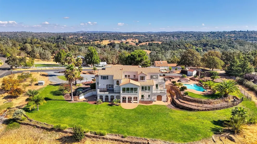 Enjoy breathtaking, unobstructed views of the Sacramento Valley and surrounding mountain ranges from this beautifully updated multi-level estate. Situated on 4.6 usable acres, this approx. 5,236 sq ft home features 5 bedrooms (with potential for 7), 4.5 bathrooms, and multiple living, flex, and entertaining spaces. Recent renovations include luxury vinyl plank flooring, remodeled kitchen and bathrooms, brand new great room fireplace, fresh interior/exterior paint, and rebuilt decks with the premium Westcoat ALX waterproof system. The pool has been resurfaced and includes new tile, making the outdoor space just as inviting as the interior. The property is ideal for entertaining and everyday enjoyment with a covered patio, sparkling pool with water feature, outdoor kitchen, front pond, lawns, raised garden beds, and approximately 12 mature fruit trees. NID water provides year-round irrigation for lush landscaping. Plenty of flat, usable land offers endless possibilitiescreate your dream orchard, vineyard, or hobby farm. Experience private, estate-style living with modern upgrades, country charm, and unforgettable sunsets.