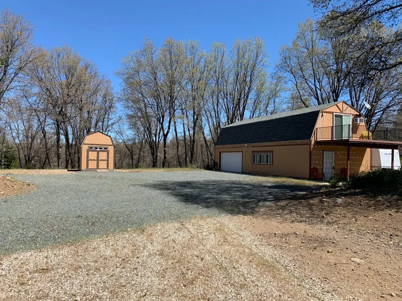 Spectacular forested canyon view. Bring your contractor and see what you can design to build on this incredible view lot. The property has been cleared and has a well, electricity, and storage shed. The gravel driveway leads to a two-story structure with a garage and interior upgrades.