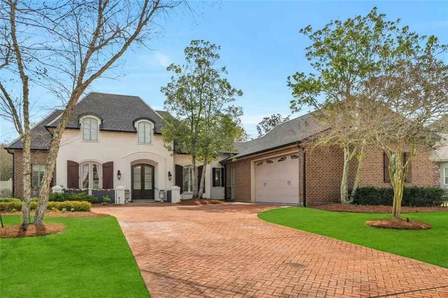 Each bedroom has its own en suite, and the primary bedroom has a wonderfully bright sitting area, as well as an oversized walk-in closet. The impressive wall of windows in the living room and dining area overlooks the backyard with its beautiful, mature Meyer lemon tree. Enjoy entertaining guests in the gorgeous formal dining room. Kitchen has granite counters, lots of cabinetry, a central cooktop island, walk-in pantry, and stainless steel appliances. Savor morning coffee or drinks on the veranda equipped with ceiling fans. The whole-house generator ensures seamless and uninterrupted power! New energy-efficient fridge, washer, & dryer too! X Flood zone. Hurry- this French Provincial beauty won't last long!