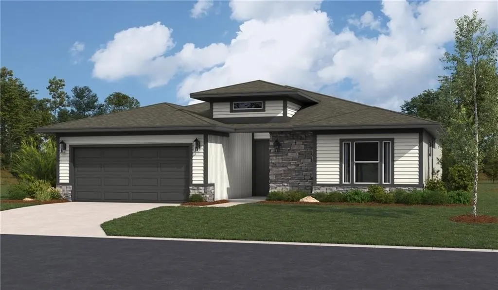 Welcome to your dream ranch home! The Thomas is a beautifully designed residence that features a desirable open-concept floor plan, perfect for modern living. The main level boasts three spacious bedrooms, including a serene master suite with a walk-in closet and a luxurious en-suite bathroom. Two additional bedrooms are thoughtfully situated near a well-appointed full bathroom, with an extra half bath conveniently located for guests. The heart of the home is the bright and airy living area, highlighted by large windows that flood the space with natural light. The kitchen, complete with ample counter space and an island, flows seamlessly into the dining area and living room, making it ideal for entertaining and family gatherings. The expansive lower level offers unlimited potential for customization. With a large unfinished space, it provides an excellent opportunity to create a personalized area tailored to your needs, whether it be additional bedrooms, a home theater, or a recreational space. Located in a desirable neighborhood, this home combines comfort and flexibility, offering a fantastic foundation for your future. Don’t miss the chance to make this house your forever home! This is a Hunt Midwest Maintenance Provided Community. The maintenance free fee is $200 per month in addition to the annual HOA fee of $600.
