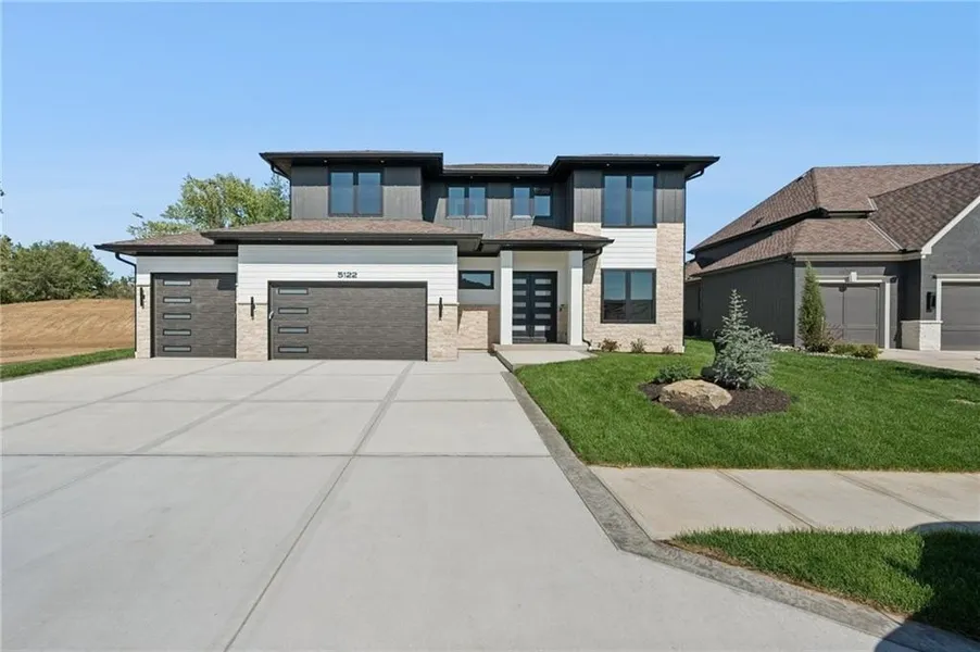 A One-of-a-Kind Masterpiece of Moody Glamour and Modern Edge. Step into a home unlike any other—a custom-built sanctuary where sophistication meets shadow and every detail is designed to dazzle. This first-of-its-kind residence exudes an irresistible blend of high-end modern living and dark, luxurious allure. The heart of the home unfolds in a striking open-concept kitchen, dining, and living space—anchored by a magnificent double-sized gas cooktop, Café Series appliances, and a double drawer dishwasher. Entertain effortlessly with dual ovens, dual faucets, and a butler’s pantry/prep kitchen that hides the magic behind the scenes. A built-in wine chiller gleams beneath chandeliers that scatter crystal light across richly veined quartz countertops. Step from the dining nook onto an expansive covered deck, complete with a dramatic outdoor fireplace—a gathering space that feels equally suited for twilight dinners and midnight conversations. The main-floor primary suite is a showpiece of moody indulgence, featuring a black-trimmed accent wall, and a zero-entry shower with dual shower heads. The sprawling walk-in closet offers pull-down bars for effortless organization and connects to a discreet washer/dryer hookup for added convenience. Downstairs, the finished walkout basement is pure enchantment: LVP flooring flows through a deep berry-and-black bar that glows under soft lighting, leading to a true theater room, stone-walled wine cellar, and finished storage with built-in shelving. The suspended garage adds a layer of architectural intrigue, while the epoxy-coated, heated three-car garage with built-ins ensures every inch is both beautiful and functional. Every corner of this home whispers luxury—two water heaters, zoned HVAC, an oversized drop zone, and a private, wooded backyard with a permanent basketball hoop and concrete pad complete this entertainer’s dream. Darkly elegant. Unbelievably custom. Unapologetically original. This home isn’t just built—it’s composed.