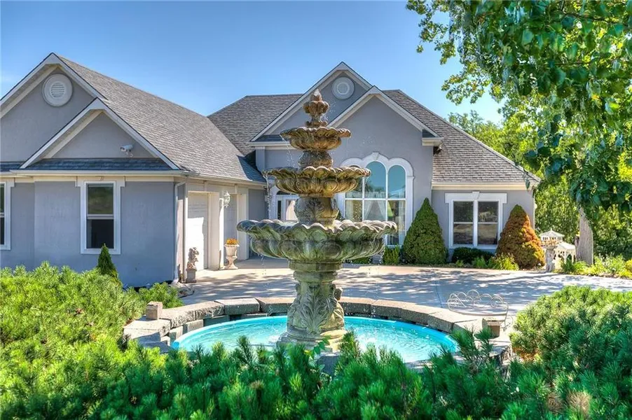 Ranch Home with 2.55 acres is in an unique Platte County neighborhood quiet, plenty of green space including 2 ponds on the green space. This home is energy efficient with custom floor plan & perfectly designed for relaxation with the Atrium & see-through fireplace that walks out on either side to lovely no maintenance decks overlooking the treed woods. Entertain in the spectacular custom kitchen with lovely formal dining room or retire to a beautifully equipped owners suite. The open finished walk-out basement offers built-ins and is flowing allowing you room for workout area, gaming area, and built-ins for the first of two TV areas including media room with 110 inch screen for watching your favorite sports or movies. 4 car garage with 2 up/2 down.