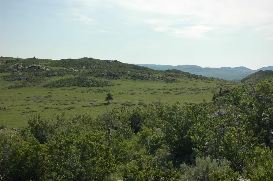 Some scattered Ponderosa Pine. Creek bottoms & springs have Cottonwoods & Willows. Mostly open grassland.This is rolling foothill terrain with some steep portions. There are some nice rock outcroppings which offer great hiding spots for the abundant game on the property and huge views of the Laramie Mountains. Little Creek appears to be a series of springs which flow above and below ground level. Other springs on site as well with water tanks. Nearby lake offers fishing and camping. Great hunting for trophy mule deer and elk in the area.Ideal location in the Laramie Mountains for that dream cabin or home. Good retirement property within an hour to a good sized city.