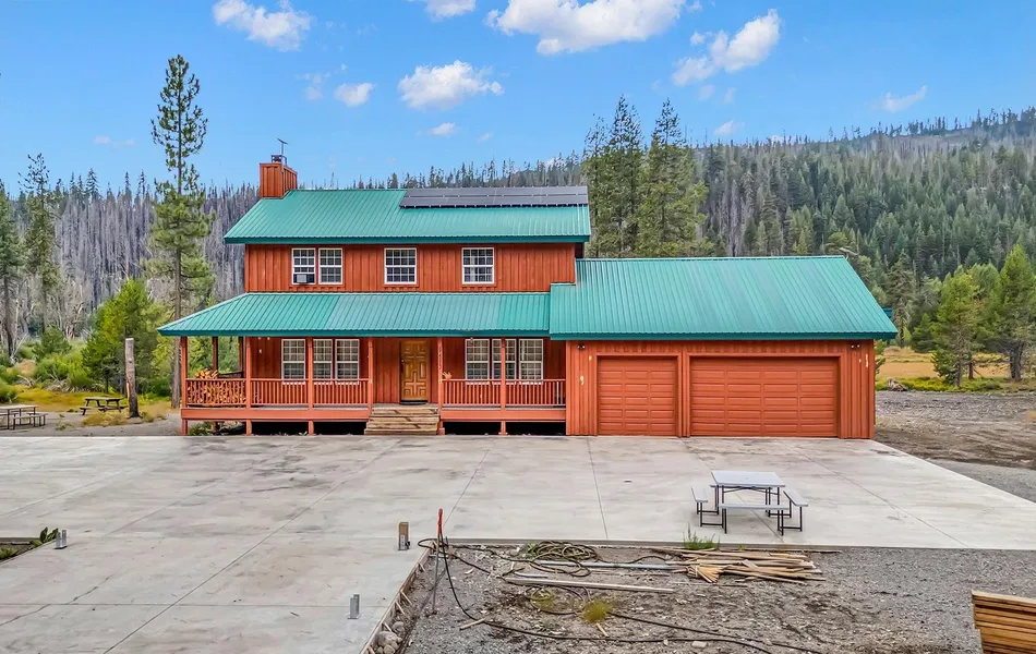 Warner Valley Outpost – Where Wilderness Meets Comfort If you long for open space and serenity, welcome to the Warner Valley Outpost. Nestled on 22.27 acres of pristine land, this lodge-style retreat gazes out over a tranquil mountain meadow, lush woodlands, and the gentle flow of Warner Creek winding through the back of the property. This 2,080 sq. ft., two-story home offers 3 bedrooms, 2.5 baths, and complete off-grid independence. Powered by a solar system and on-demand generator, it delivers modern amenities with self-sustained ease. Step into the expansive living and dining area, where large windows frame views of a peaceful pond and a small creek just beyond your back door. The spacious kitchen is a chef’s dream, featuring a commercial-grade 6-burner gas stove with griddle, dual ovens and broilers, tile and butcher block counters, custom cabinetry, a farmhouse sink, and newer stainless steel appliances. Upstairs, you’ll find two guest bedrooms, a full bath, a dedicated office, and the primary suite with en-suite bath—all offering forest views and a sense of quiet retreat. Solid wood doors, tile flooring on the main level, and a mix of carpet and wood upstairs add warmth and character throughout. Outside, a covered wraparound porch invites you to relax and take in the abundant wildlife. The oversized 3 +-car garage and large concrete patio include two foundations ready for future woodsheds or creative expansion. Endless opportunities for hiking, fishing, and birdwatching await—yet you're only 11 miles from the charming town of Chester, and a short drive to Drakesbade Resort in Lassen National Park.