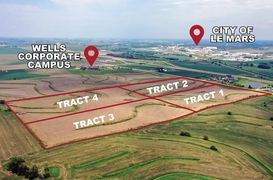 Not Just a Farm!! When you stand on this Prime Piece of Land and look in any direction you see endless possibilities and beauty! Look East across the road and youll see the beautiful Sadona Hills Development with its lovely homes, serene setting and all overlooking the awesome vistas of the City of Le Mars and the beautiful Floyd River Valley stretching from North to South. Look North mile and see the lovely landscaping of the Wells Corporate Campus. On the top 20-acre parcels 3 & 4 you will find unmatched 360 beautiful vistas plus serene peace and quiet, all your own!!