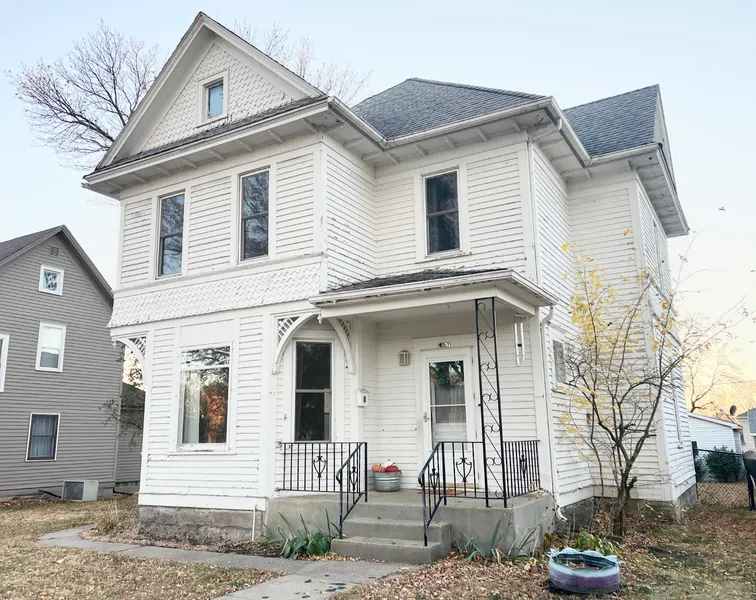 Welcome to this must see two-story home offering a blend of classic charm and modern updates. As you enter, you’re greeted by a foyer with a stunning original oak staircase, crown molding, and open concept into the living room. The large living room with new flooring has outstanding natural light throughout with its stained glass windows. The main level also includes a master bedroom with an attached bathroom. Additionally, the main floor boasts laundry hookups for added convenience. Upstairs, you'll find three large bedrooms and a bathroom with a recently installed vanity. The basement offers ample space for storage, accommodating all your needs with ease. The property features a fenced-in yard and a three-stall detached garage accessible via alley access, providing additional storage or potential workshop space. The detached garage was built in 1997 and boasts a large workbench. Notable updates include windows and a water heater installed in 2017, new flooring on the main level, a new fenced in yard, carpet that was installed going up to the second floor, and so much more. This property is perfect for someone seeking a restoration project. Owner has done a spectacular job at keeping the original charm in this home. Don’t miss this opportunity to own a home with character, personality, charm, and a prime location.