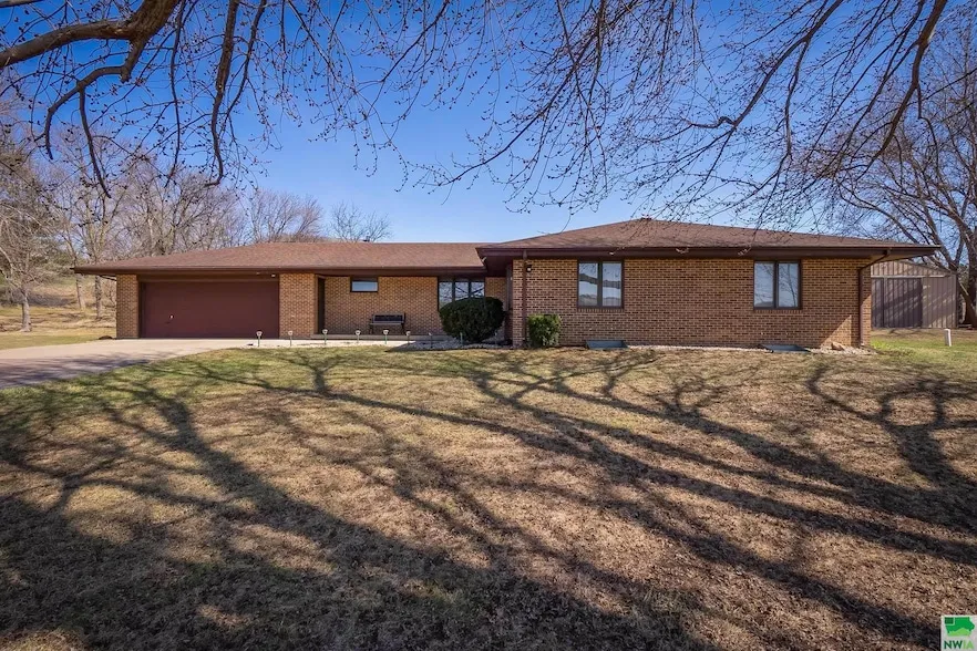 Here is the close-to-town acreage you have been looking for! Properties like this are a true find, offering the perfect blend of privacy, space, and convenience. This property is approximately 5 minutes from the Northside of Sioux City and has easy access to Highway 75. The house that sits on this slice of paradise is immaculate. Walking up to the house, you'll first notice the charming covered front porch and the all-brick exterior offering low-maintenance living. The spacious main level features the primary bedroom with an en suite. The main level also boasts a formal dining room and two living areas, one of which includes a beautiful brick fireplace. Downstairs, you ll find three large bedrooms and a flex room, making it an ideal space for hosting. This acreage also features two versatile outbuildings with their own driveway, one being a 30x36 steel building complete with electricity and a concrete floor, offering ample room for storage, hobbies, or future development. Enjoy the benefits of living in a quiet, rural setting without sacrificing proximity to the city. Plymouth County taxes. Hinton school district. New HVAC in 2022. All measurements are approximate.
