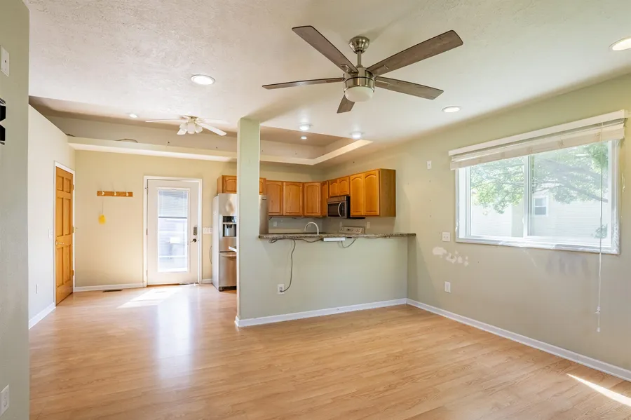 This charming 2~bedroom home features spacious walk~in closets in both bedrooms. The primary bedroom closet even includes laundry hookups—washer and dryer are included!! The second bedroom makes a great option for a home office or craft room. Enjoy the open~concept layout of the kitchen, dining, and living areas. The kitchen comes fully equipped with all appliances, and the bathroom features a convenient step~in shower. Step outside to the patio area between the house and garage—perfect for grilling or relaxing. The yard space to the east allows for easy gardening with water line availability. Don’t miss the oversized garage, built in 2011, with over 1,000 square feet of space. The west stall has been used as a workshop. It includes an abundance of outlets and electric heat. The entire garage is insulated, making it both functional and versatile year~round. The expansive driveway allo...