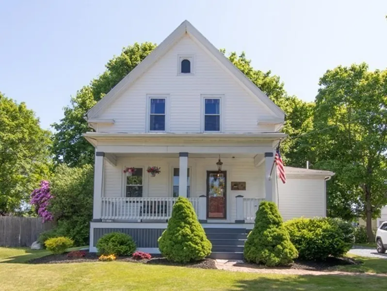 A must see... Beautifully remodeled Farmhouse Chic Colonial set on 2 acres of "Country Backyard". The welcoming Farmers porch leads to an entry foyer with sweeping ceilings and beautiful hardwood flooring which flows into a family room open to a formal dining room with built in hutch. A Sunny Updated Eat in Kitchen with crisp white cabinetry, new appliances, and large center island with pendant lighting provides the perfect space for family gatherings. An updated full bath and playroom with laundry complete the first floor. The Second floor offers three bedrooms all with hardwood flooring and ceiling fans and an second a updated bath. The lovely custom details to include built ins, crown molding, wainscotting,wood columns and beadboard add to the quality craftsmanship seen throughout the home. Enjoy the convenience of Vinyl siding, Insulated windows, newer natural gas heating system, town water and sewer. Great Location minutes to commuter rail, shopping and restaurants.